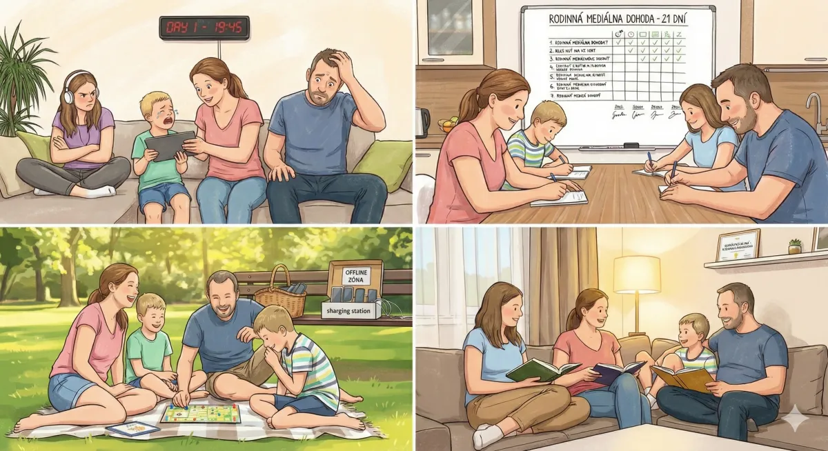 21-dňový plán k digitálnej rovnováhe je praktický systém založený na neurovede a biochemii mozgu. Pomáha rodinám premeniť hádky na pokoj bez nutnosti prísnych zákazov internetu.